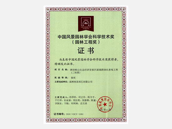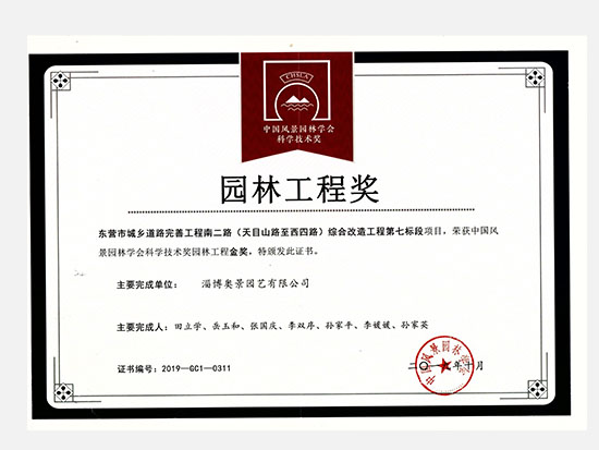2019年中國風(fēng)景園林學(xué)會(huì)科技獎(jiǎng)園林工程金獎(jiǎng)