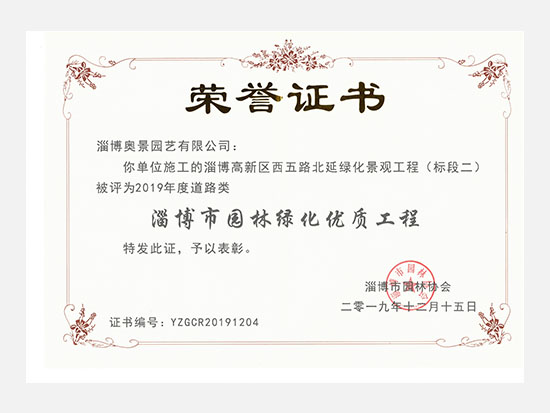 2019年淄博市園林綠化優(yōu)質(zhì)工程
