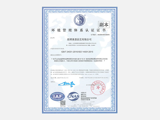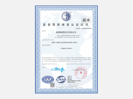 質(zhì)量管理體系認(rèn)證證書(園林綠化)